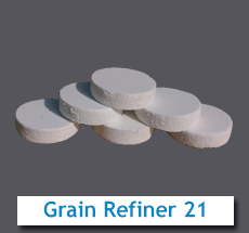 melting conditions and with suitable grain refining elements. Grain Refining is easily achieved with these type of tablets as it gets easily dissolved as compared to other grain refining elements.